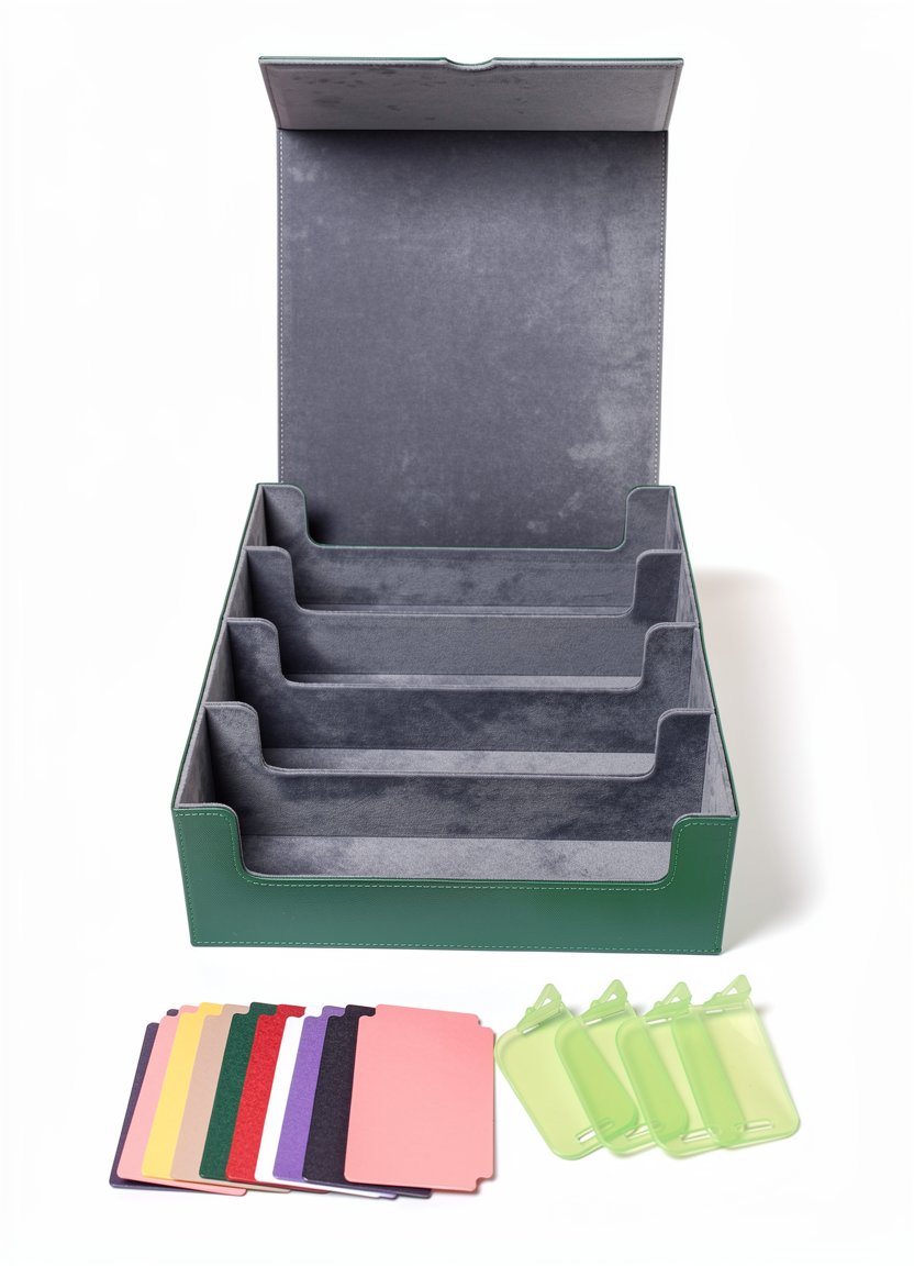 Boite de rangement Verte 400 cartes toploaders avec vitrine
